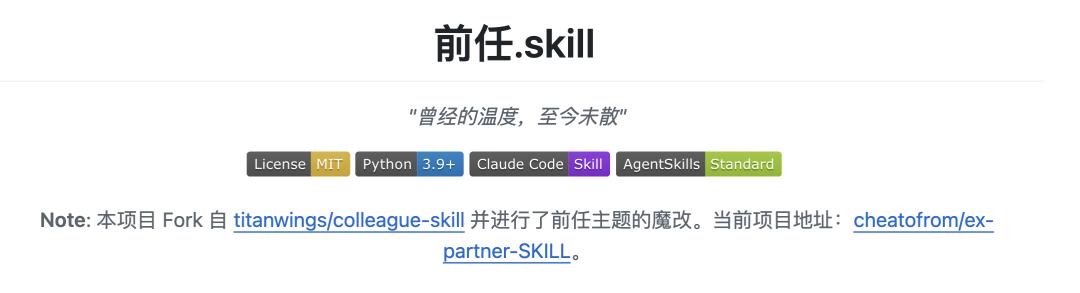 最近很火的同事.skill,上线不到一周,就获得了 7k stars(收藏)。项目的宣传文案就是它的使用场景:你的同事跳槽了,留下大量的文档没人维护?你的实习生离职了,只留下空荡的工位和烂尾的项目?你的搭档转岗了,熟悉的默契一夜之间归零?