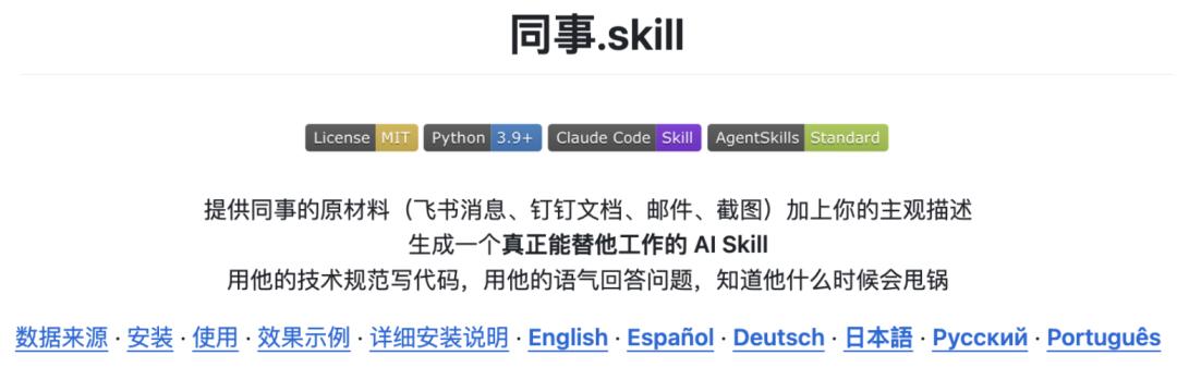 同事.skill,一个最近在 GitHub 上爆火的开源项目:导入同事的“原材料”(飞书消息、钉钉文档、邮件、截图),克隆一个能够替他工作的 AI。