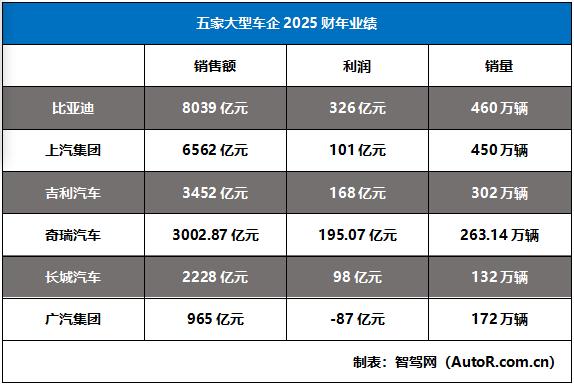 此时2026年的一季度已经结束,中国的六家传统汽车品牌吉利、比亚迪、长城、上汽、广汽、奇瑞和蔚小理、小米、零跑、赛力斯等共12家汽车企业的2025年财报已发布完闭。