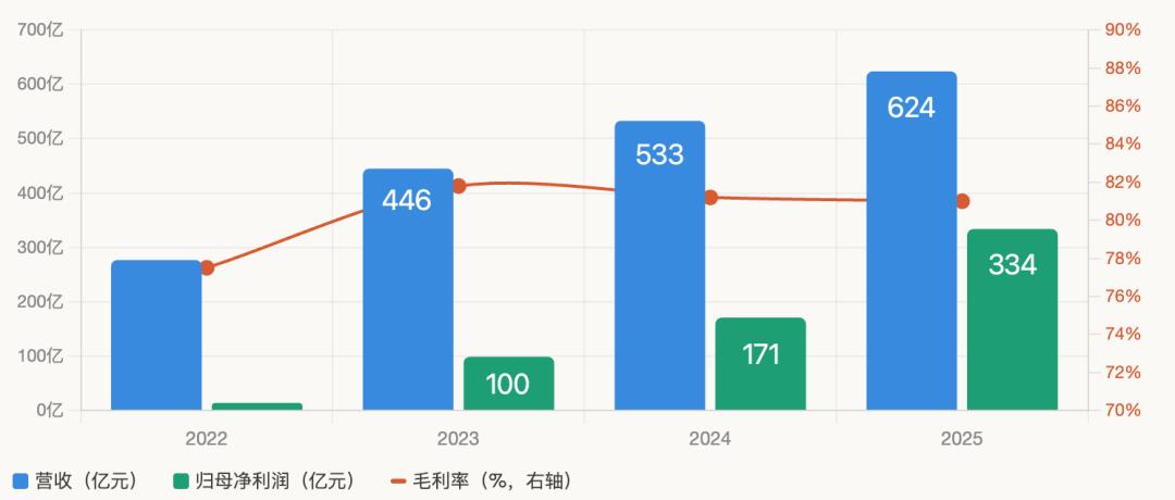 与此同时,携程的毛利率从2022年的77.5%升至2023年的81.8%,2023至2025年三年保持在80%以上,净利润从14亿涨到333亿。