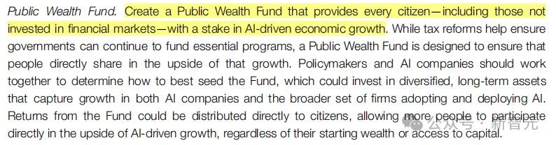 建立AI公共财富基金:把AI增长的红利直接分给每位公民,让普通人也能分享AI带来的财富上涨;