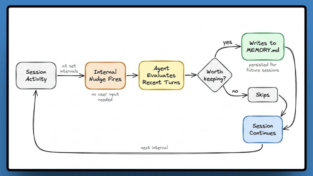 这套机制与Hermes的有限记忆设计,在目标层面高度一致——让Agent越用越懂用户,同时对长期运行的成本与噪音进行严格控制。