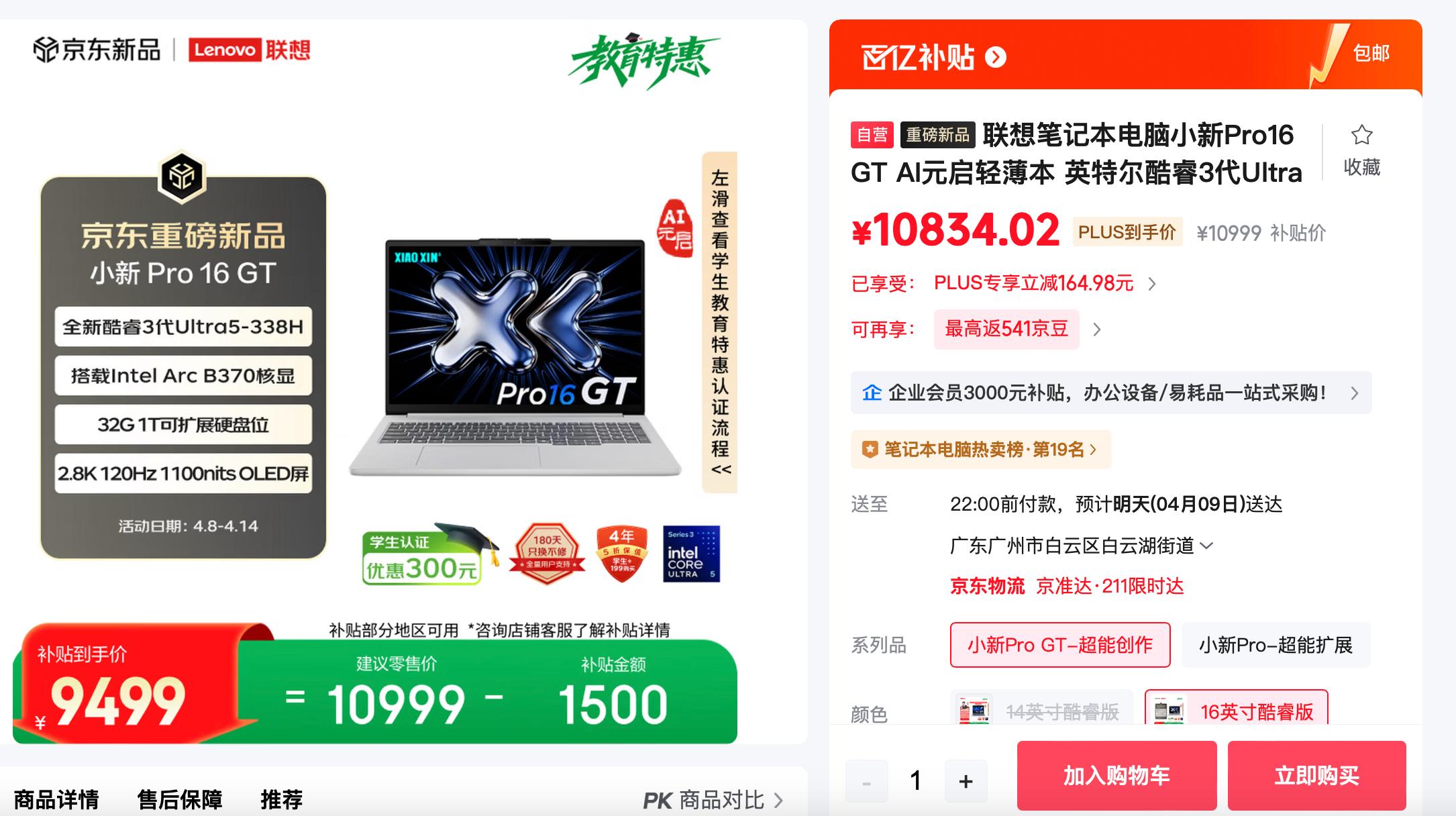 让人意想不到的是,短短半个多月后,这款刚发布的笔记本新品就涨价了,小新16 Pro GT全系价格上调,@sandwich入手的这个版本涨了2500元。而且,现在这款笔记本没有首发优惠了,即便用上国补,到手价仍然接近10000元。