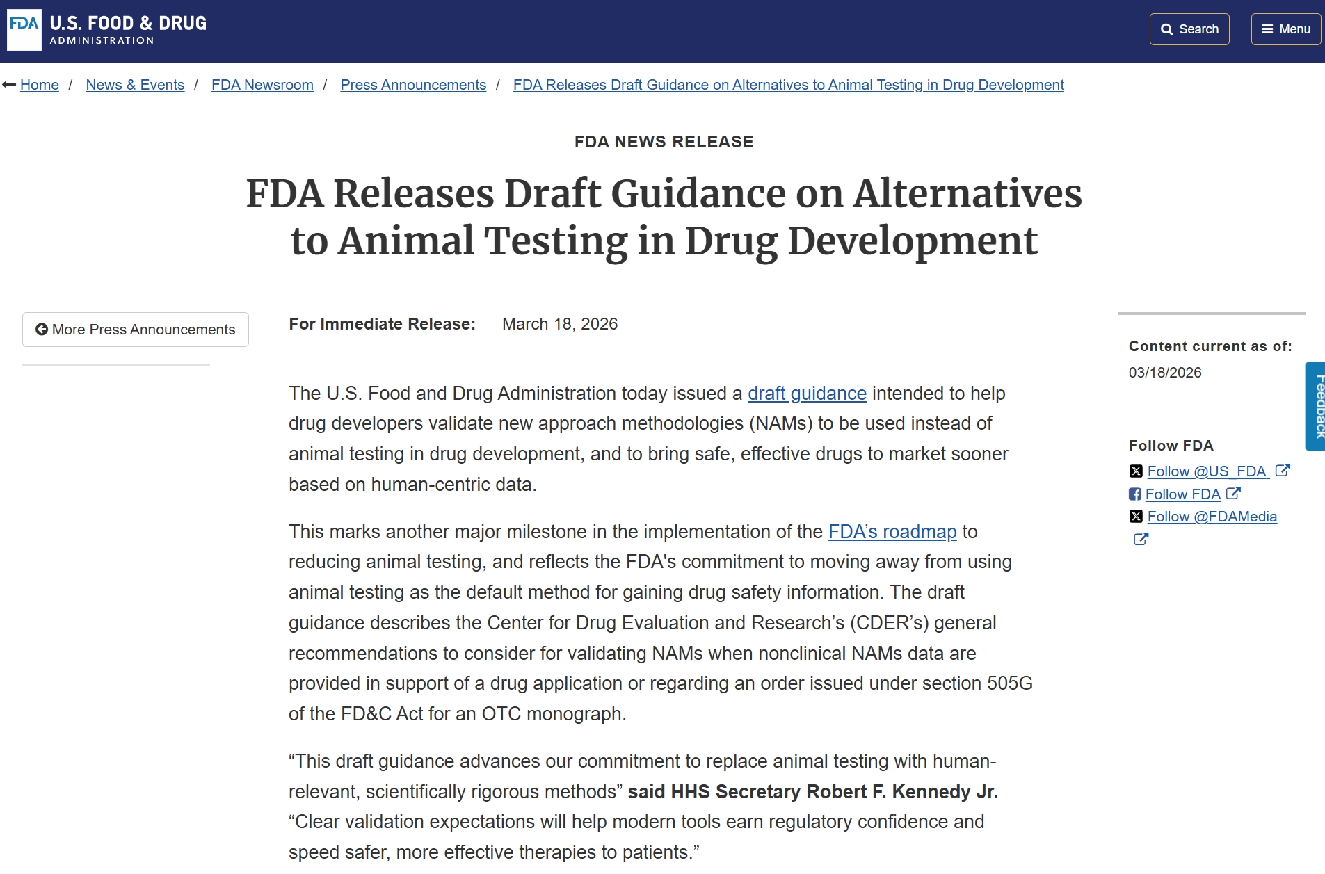 从2022年FDA的现代化法案2.0被批准开始,“替代动物实验”的监管战略一直在持续。今年3月中旬,FDA终于发文表态,开始接收非动物数据支撑新药评审,鼓励使用类器官/器官芯片、AI毒理学模型等新方法学(NAMs),逐步减少药企对动物实验的依赖。
