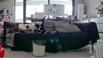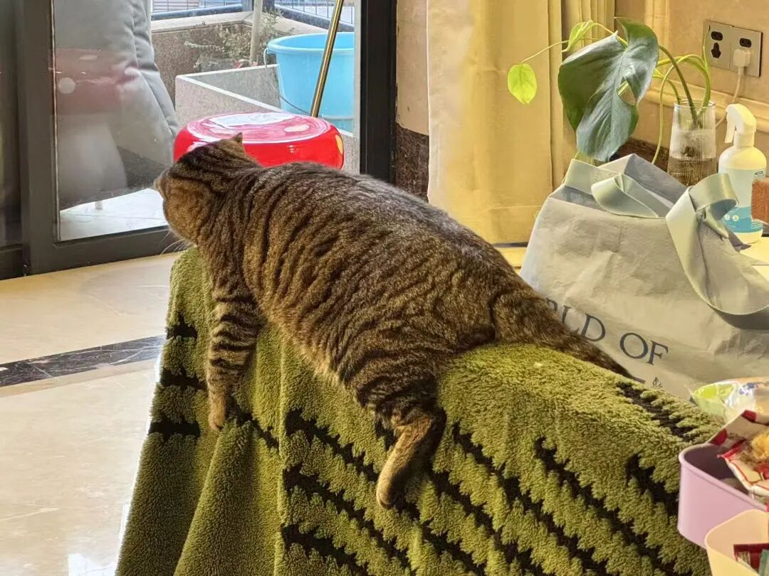 我赶紧查看监控,发现原来是家属正在沙发上给猫拍屁股,猫正爽呢。