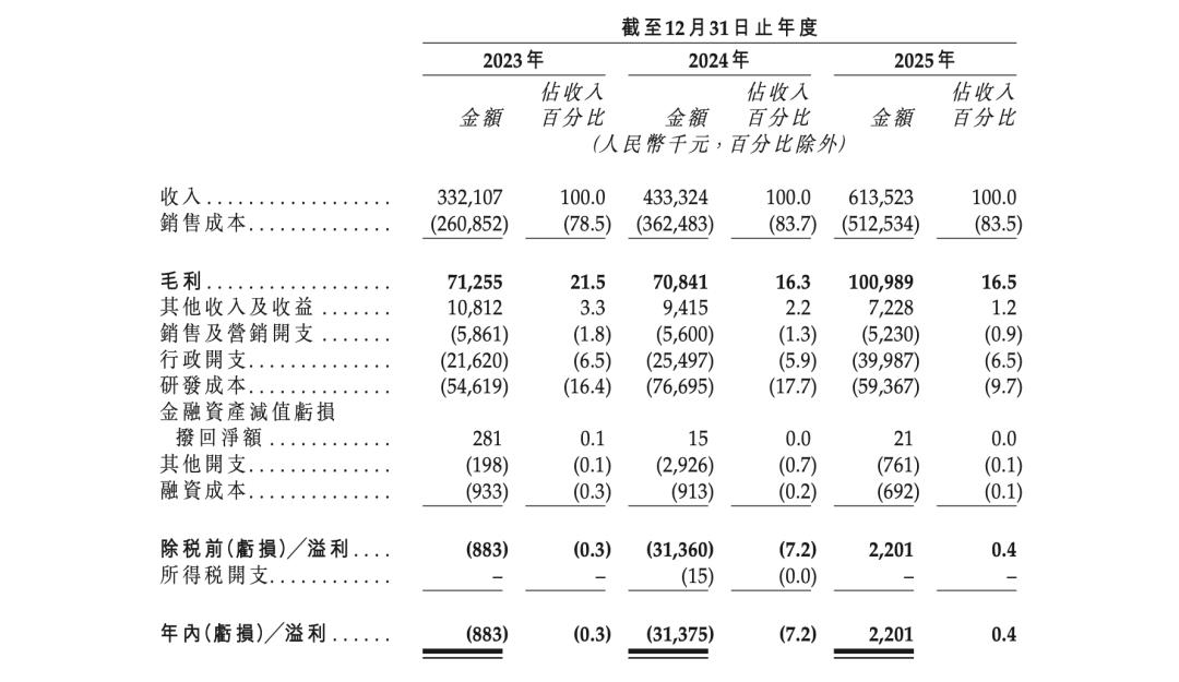 2023-2025年,欢创科技的收入分别约3.32亿、4.33亿、6.14亿元;毛利分别约7125.5万、7084.1万、1.01亿元,毛利率分别为21.5%、16.3%、16.5%;净利润分别约-88.3万、-3137.5万、220.1万元。