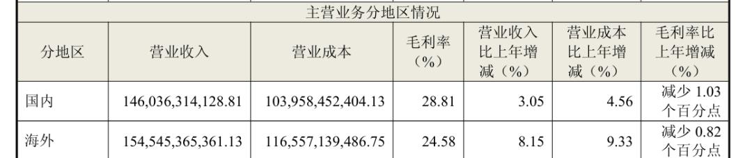 财报中海外收入截图
