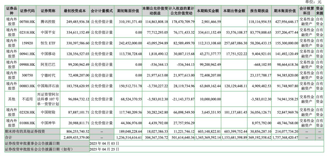 那笔钱从哪里来?答案写在年报的投资板块里,一篮子蓝筹股的公允价值变动与处置收益。