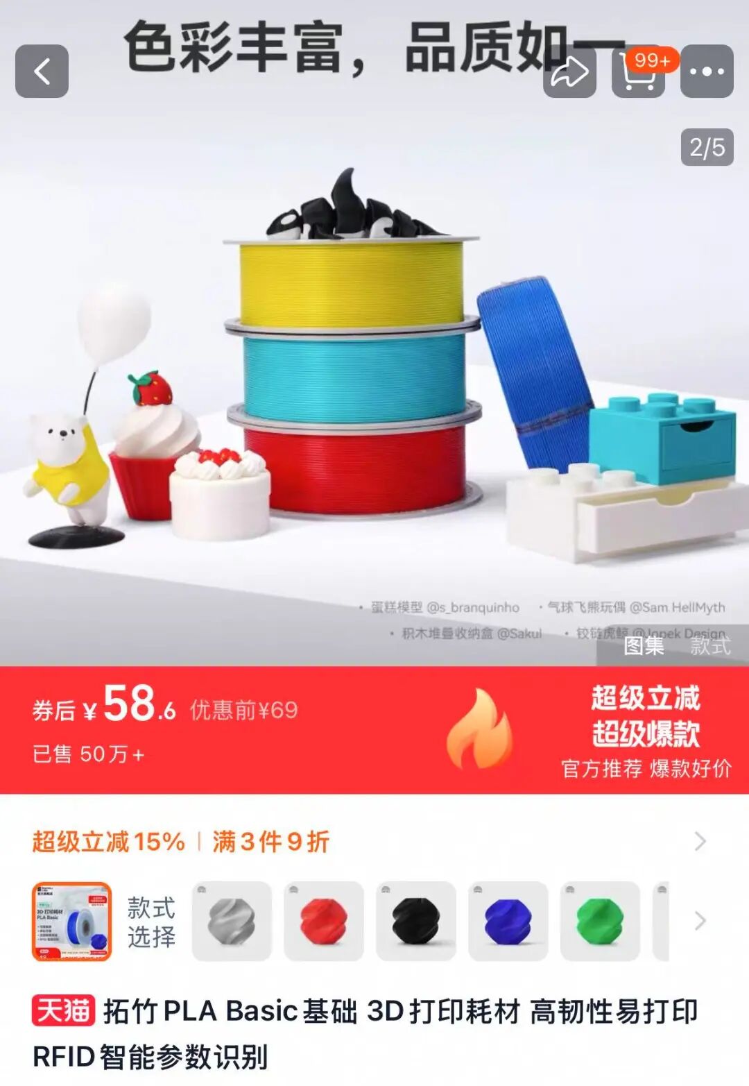 拓竹打印材料,1 千克的单色耗材卖大约 60 元,不算损耗的话可以打印 4 条龙|淘宝