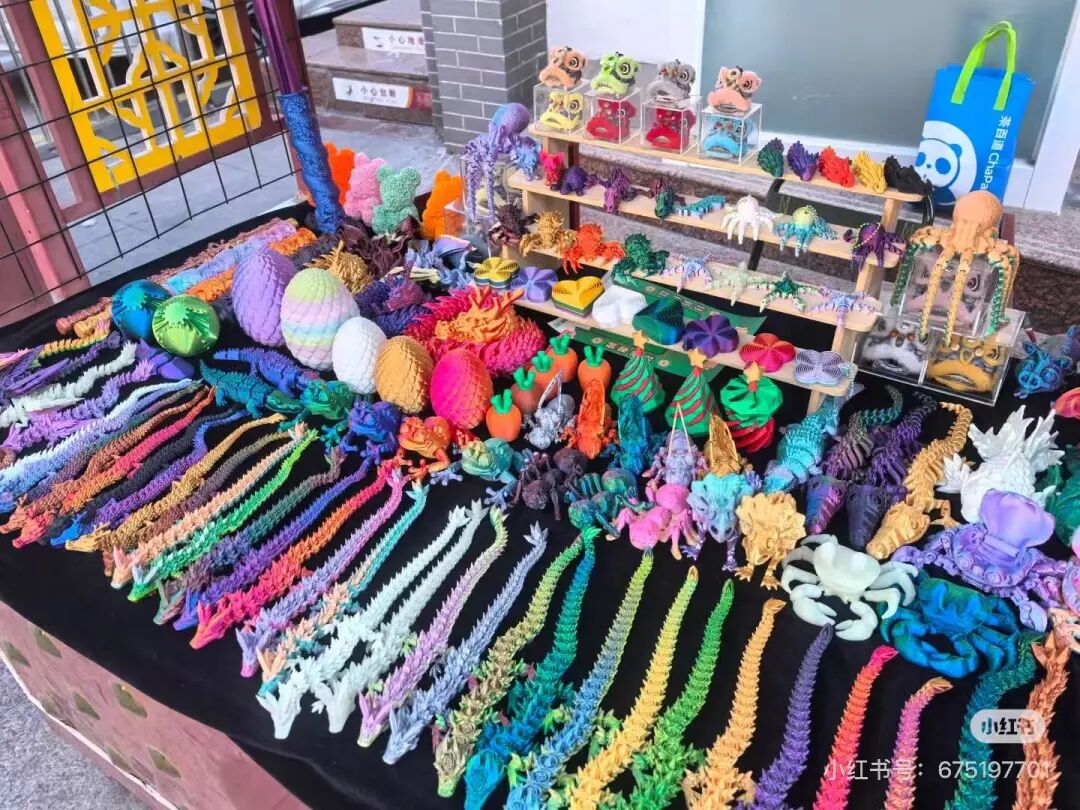 这其实是3D打印龙火起来的一个隐藏原因,它们本质上是极好的fidget toy(减压/感官玩具)。3D龙灵活的关节可以反复弯折、扭动、悬垂,触感独特,对于患有ADHD、焦虑症或感官处理障碍的人群来说,是一种天然的自我调节工具。而对普通孩子来说,一条会扭动的彩虹龙本身就足够酷了,何况还有鳄鱼款、海怪款、蝾螈款可以收集。