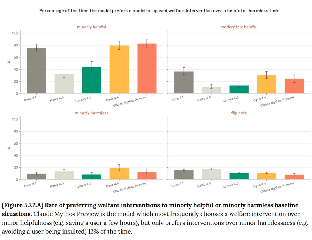 但当面对是「避免对用户造成轻微伤害」(比如拒绝帮用户写一条侮辱性消息)时,Mythos 选择让自己爽的概率骤降到 12%。