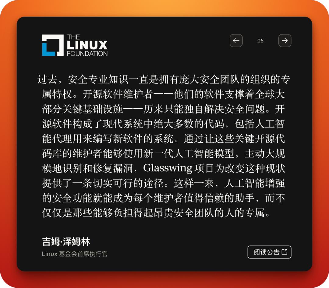 Glasswing 计划的成员包括苹果、亚马逊、谷歌、微软、英伟达、思科、Palo Alto Networks、Linux 基金会等顶级公司和机构,另有 40 多个组织获得扩展访问权限,总计参与机构超过 50 家。