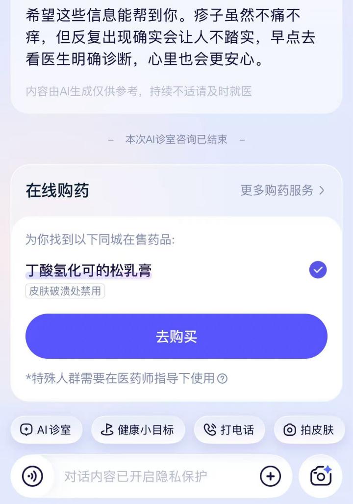 但奇怪的是,在和AI对话时就能卸下防备,有什么说什么能用最快的时间推断出大致情况,最后觉得都说到这里了,直接挂个号去医院看看也算不上什么世界末日,于是迈出了主动就医的第一步。