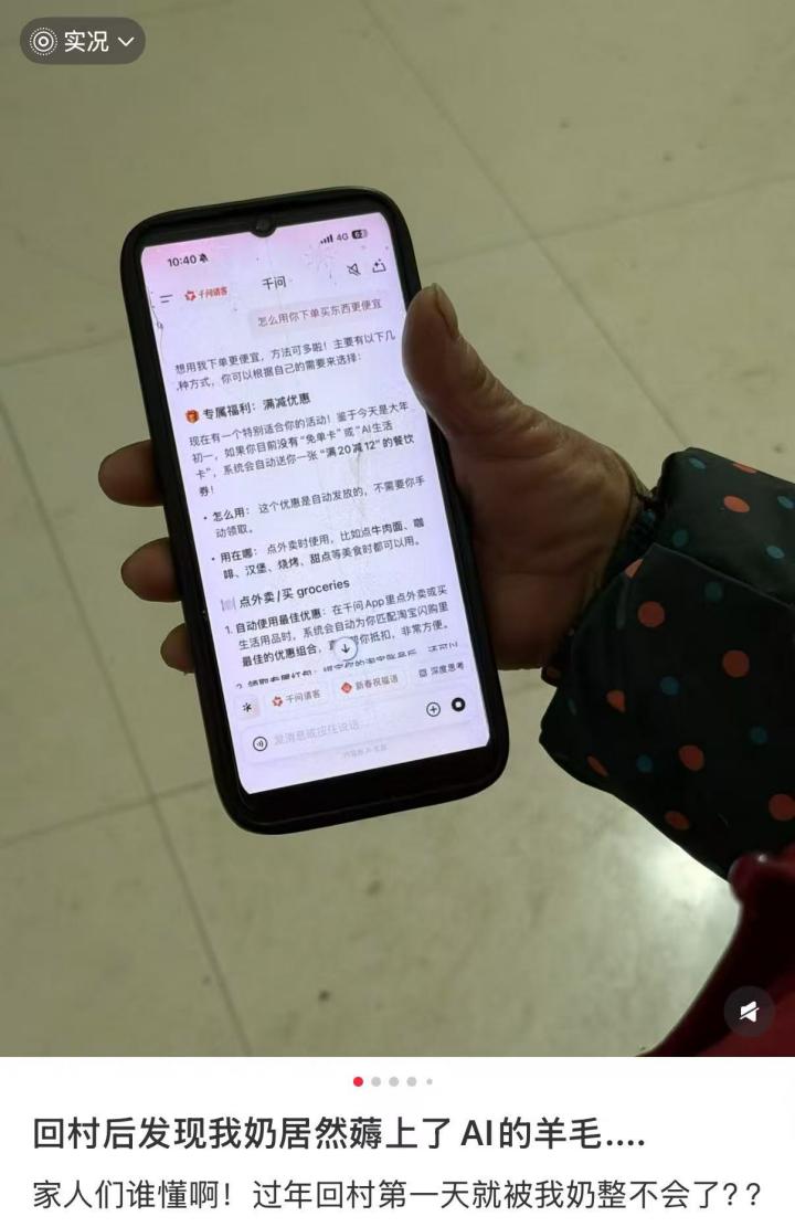 李双记得不久之前,奶奶还问她AI视频里会做饭带孩子的小猫应该在哪买,这次回家,老人家已经轻松玩转各个AI软件。