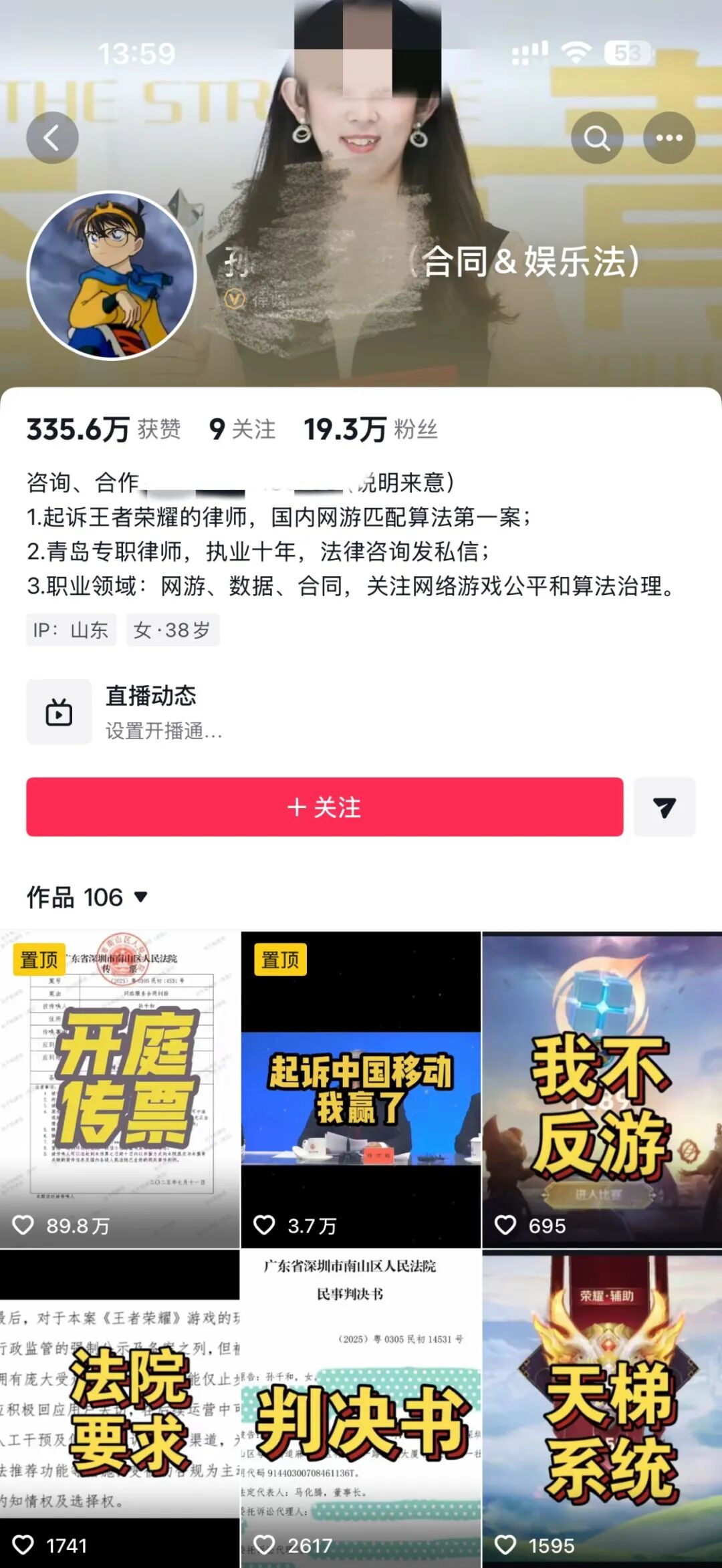 孙律师在自媒体不断周知自己起诉腾讯,被媒体关注后,她变得很忙。在抖音、小红书、B站、贴吧、知乎等社交平台上,我们可以看到她比以往活跃的身影。而原来账号发布的内容,大部分是关于婚姻、合同、著作权等法律知识的普及,现在几乎变成了清一色的游戏及游戏相关法律解读,且重点将“炮火”对准王者荣耀。