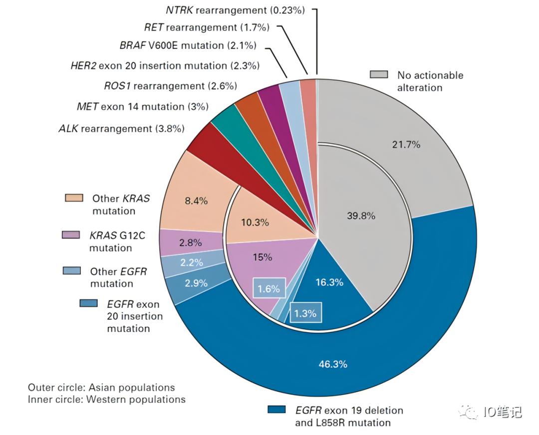 如非小细胞肺癌9大驱动基因突变,EGFR突变人群比例较高,EGFR抑制剂最先被开发出来,后续众多突变人群比例较低的靶点也逐渐被开发出靶向药(ALK、MET、ROS1、HER2 exon20、BRAF V600E、RET、NTRK等);