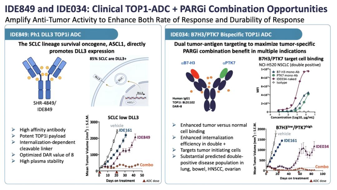 IDEAYA(纳斯达克上市,市值约28亿美元),主要资产包括PRMT5、MAT2A、WRN、PARG、 Polθ(POLQ)等靶点。值得关注的是,IDEAYA近年引进了多款ADC产品(恒瑞DLL3 ADC、百奥赛图B7-H3/PTK7 bsADC等),探索其联用合成致死(PARG 抑制剂等)产品的协同潜力。临床前数据表明,以上ADC与PARG 抑制剂IDE161 联合使用时,进一步释放出卓越的肿瘤特异性协同治疗潜力。