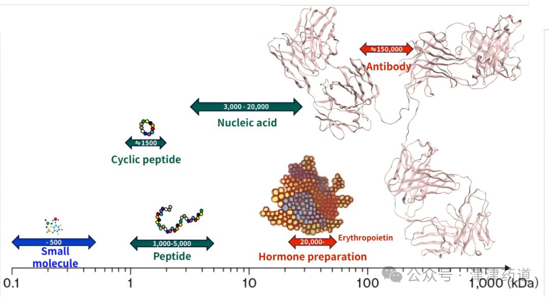 此领域主要解决传统小分子“个头小”,对于蛋白相互作用PPI等大的作用界面、蛋白表面平坦光滑等难以靶向或结合的问题,通过把分子“做大”来解决此类问题。此领域由于分子结构非常复杂,最大的挑战在于分子结构设计的复杂性、SAR构效关系研究和CMC的困难。