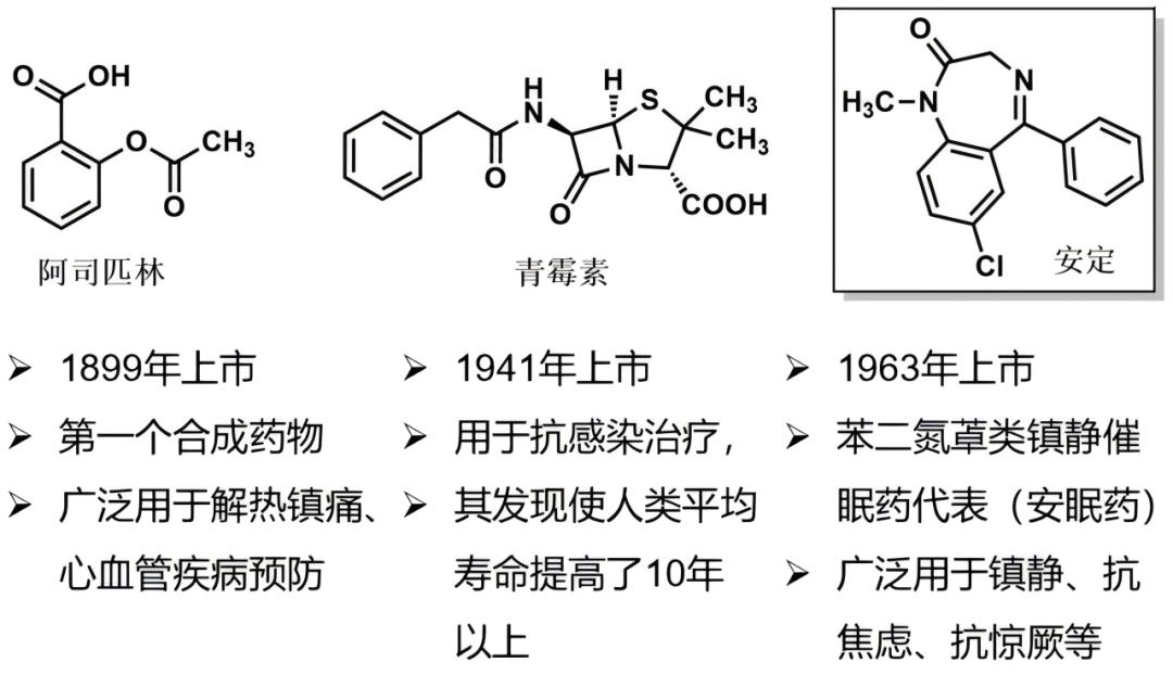 医药史上“三大经典药物”:阿司匹林、青霉素、安定(地西泮)均为小分子药物。