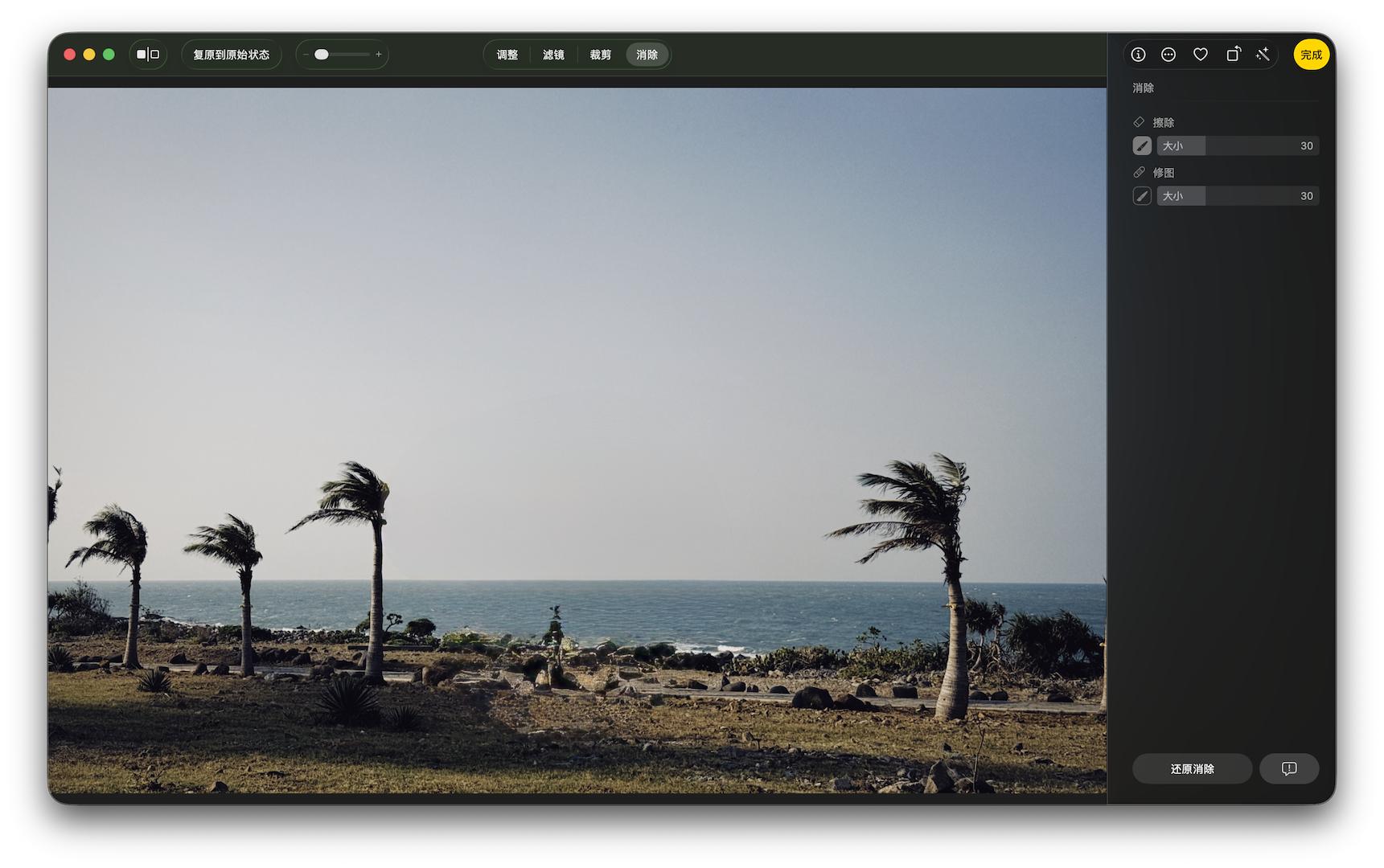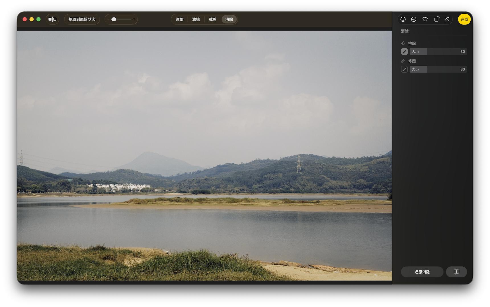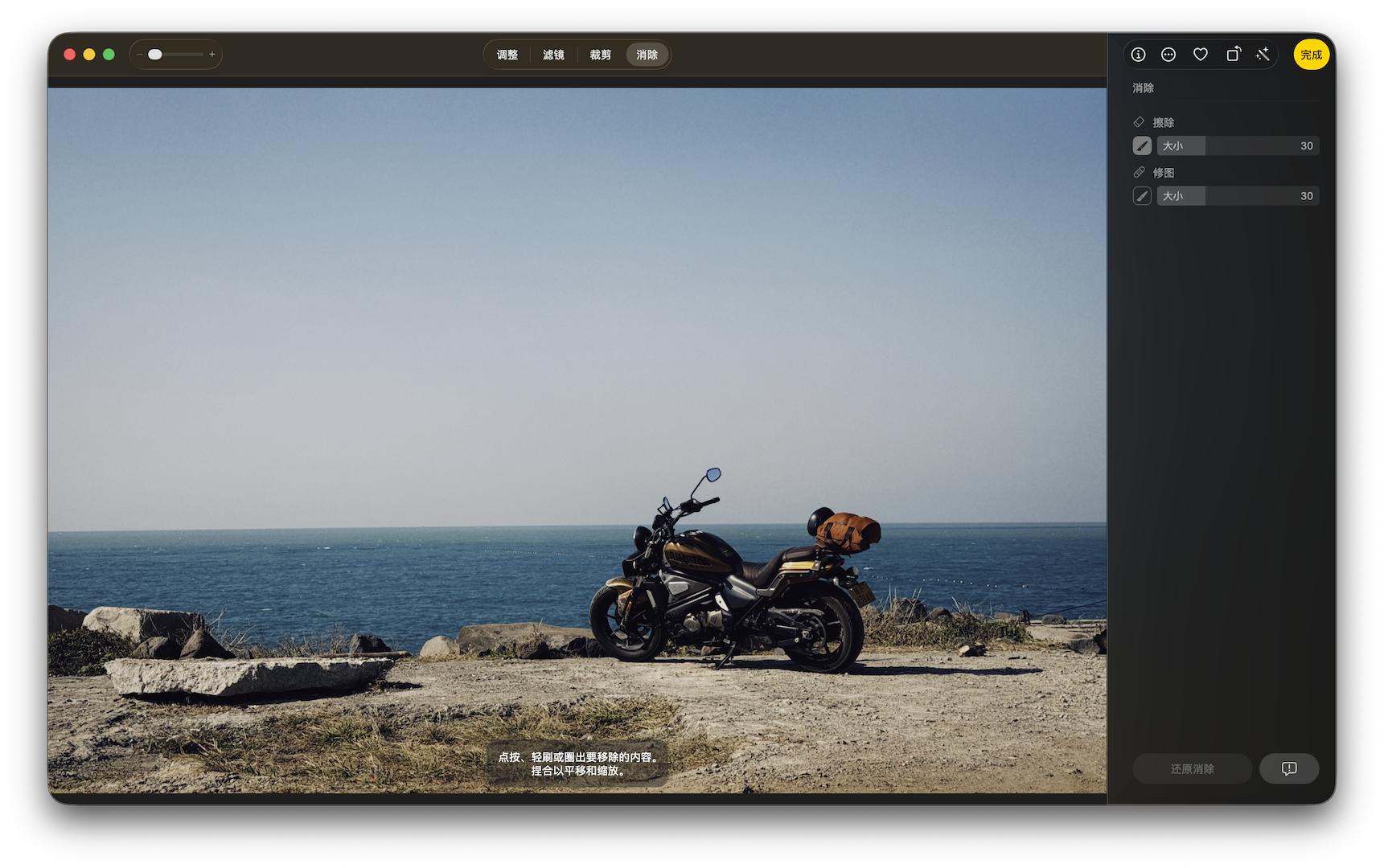 用法上 Mac 的 AI 消除和国产手机的 AI 修图也差不多:进入到 AI 消除模式后,苹果智能会先对画面做一个预识别,自动标示出可能需要消除的人或物。点击、圈选或涂抹需要消除的物件后,苹果智能会自动执行消除和填充的工序。