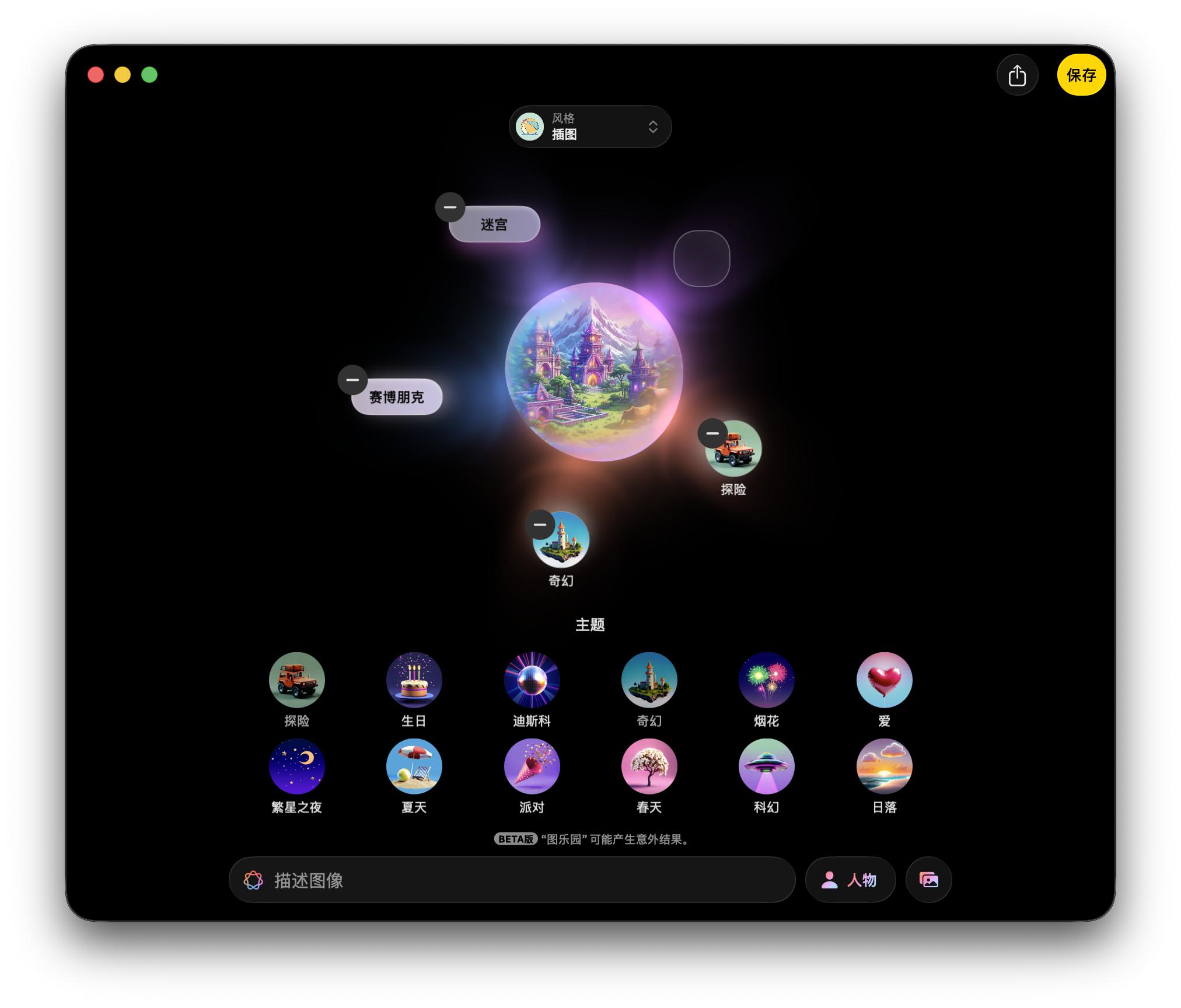 如果说这个 AI 修图还有一定的「可用性」,那苹果智能的「生图」功能就只能用「玩具」来形容了。简单来说,苹果在 macOS 中内置了一个叫「图乐园」的 App: