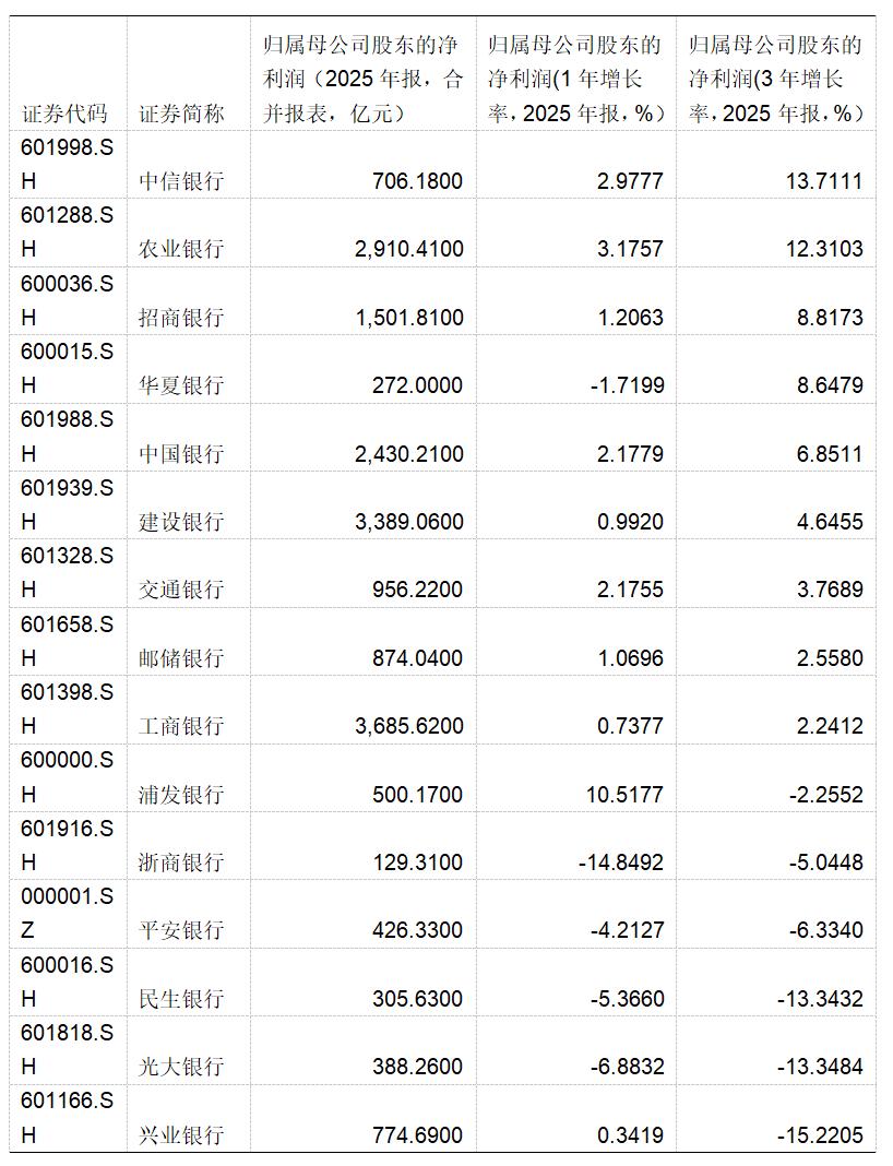 2023年至2025年,全国股份行的盈利能力出现明显分化。其中,中信银行归属母公司股东净利润增幅为13.7%,在15家大中型银行中排首位。