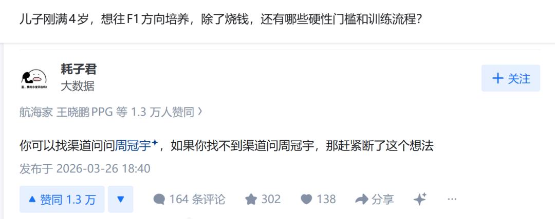 前段时间F1大奖赛在上海举行,凯迪拉克车队的储备选手周冠宇,作为正式赛中首个中国面孔备受瞩目。随后,一条问答在社交平台走红: