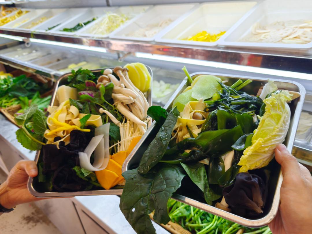 △ 蔬菜自助火锅,从摆盘开始就写着 “丰盛”二字。(图/Kyla 摄)