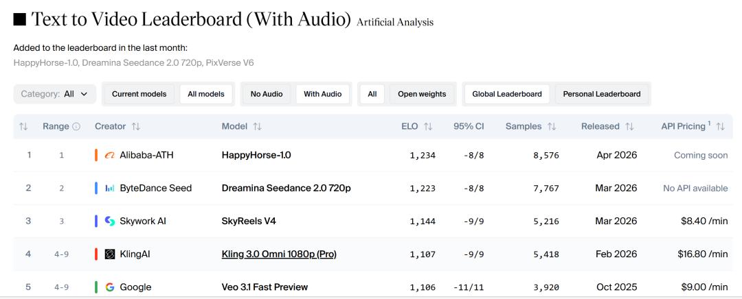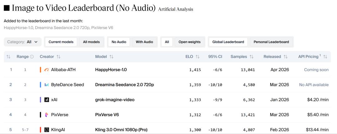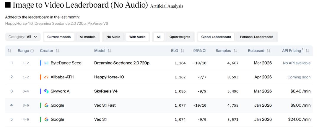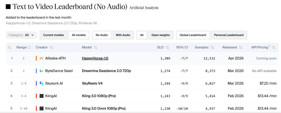 不过,有一点需要提醒:新模型的 Elo 分数波动通常更大。这些分数后续还会变动,具体走向尚无法确定。HappyHorse 1.0 正式开放后,样本数量还会增多。