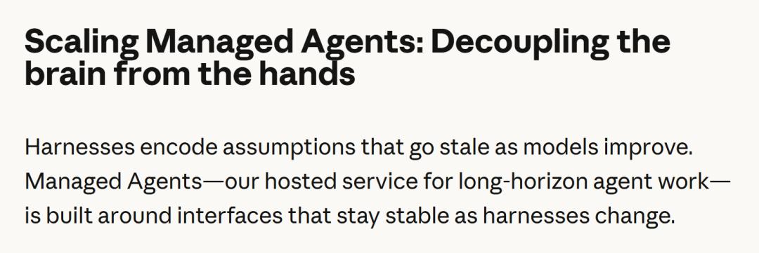 这份报告的核心就是——把大脑(模型逻辑)和双手(执行环境)彻底分开
