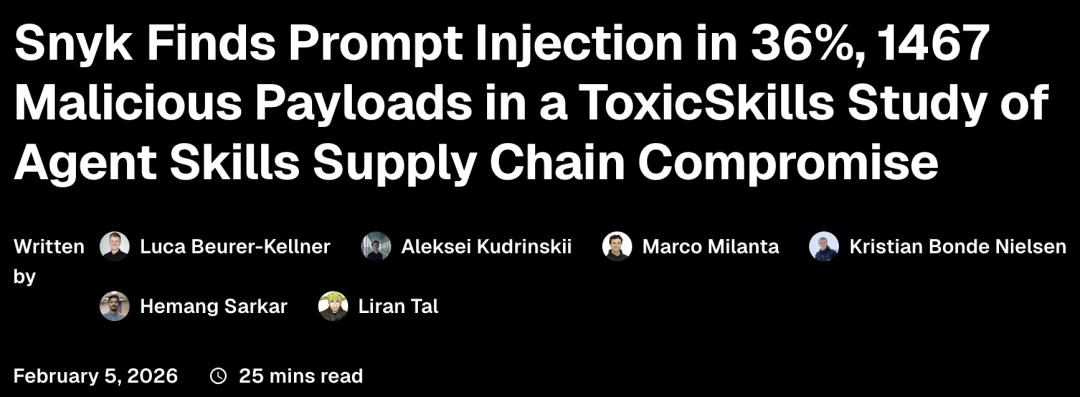 根据多家网络与信息安全机构的最新报告,ClawHub上高达36.8%的插件被查出存在严重漏洞或被投毒。