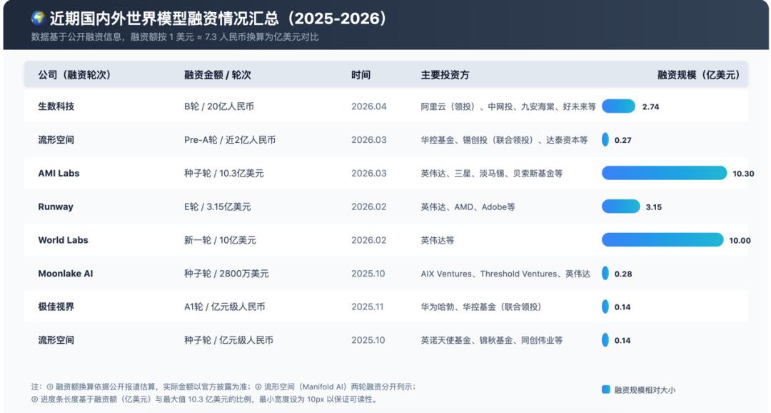 敏感的VC,是最早嗅到市场风向的人。颇为巧合的是,代表世界模型阵营的李飞飞和杨立昆,均刚刚完成10亿美元级别的新融资,国内代表生数科技4月10日也刚刚官宣获得了A++轮融资,融资金额近20亿人民币。
