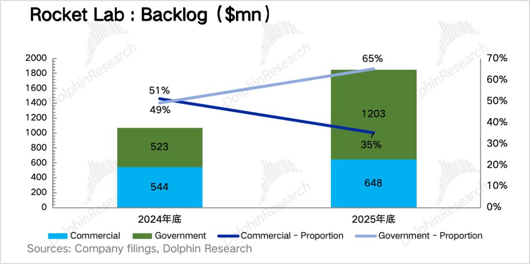 目前Rocket Lab订单以军方和政府为主,一定程度上源于目前Rocket Lab主流火箭Electron的小型化特点,更适配部分政府和军方需要,因为他们需要的是快速发射能力,且通过专属发射可以强化保密性,对成本不那么敏感;但商业项目更具有成本敏感性,Electron单次发射成本较高,相对来说竞争力要差一些。