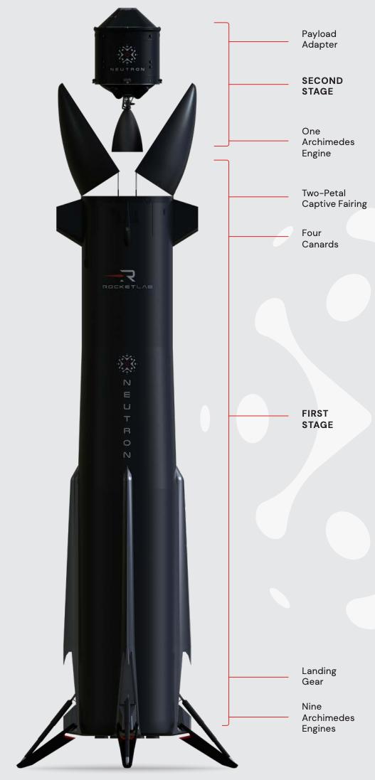 (1)Neutron的整流罩Hungry Hippo与一级一体化,发射后会像河马嘴一样释放二级,之后会随一级返回地面,这样可以提高整流罩的回收效率并降低回收成本。