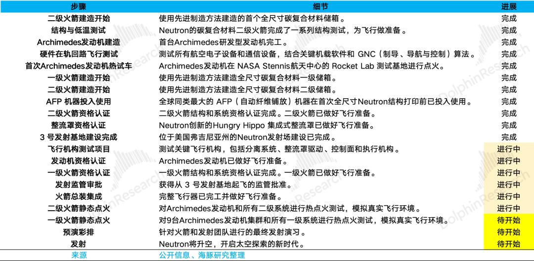以下是Rocket Lab披露的Neutron的各项工作进度: