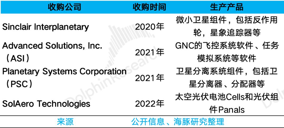 Rocket Lab主要是通过收购整合来实现上述一体化能力的,主要收购公司如下: