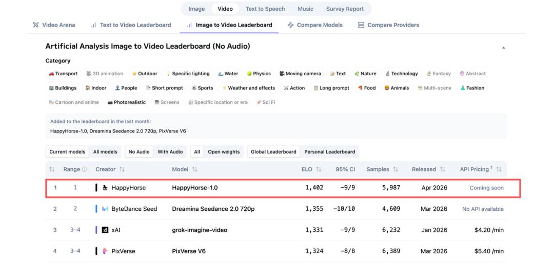 神秘模型HappyHorse登顶全球AI评测榜