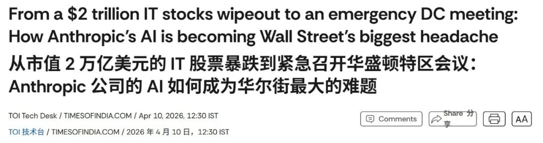 在Mythos这个「神话」模型面前,人类金融体系几十年来引以为傲的稳健,显得如此脆弱。