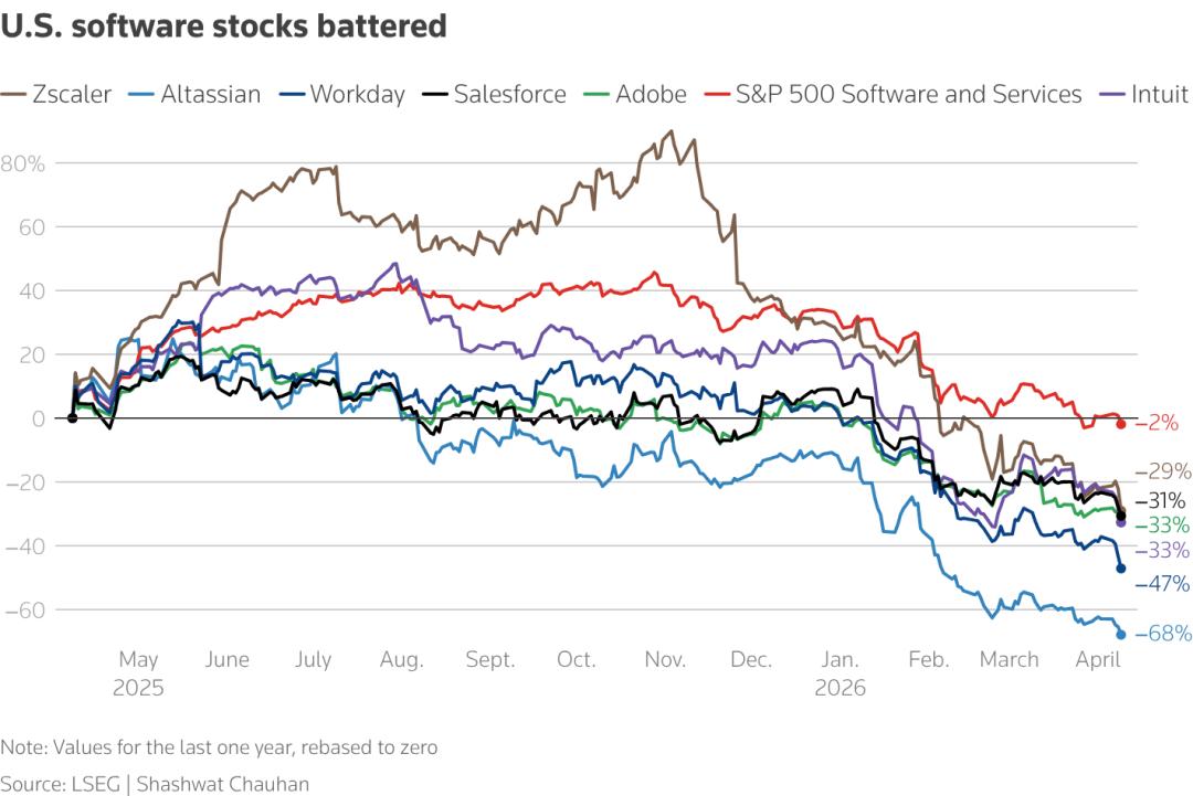 https://www.reuters.com/business/us-software-stocks-fall-anthropics-new-ai-model-revives-disruption-fears-2026-04-09/