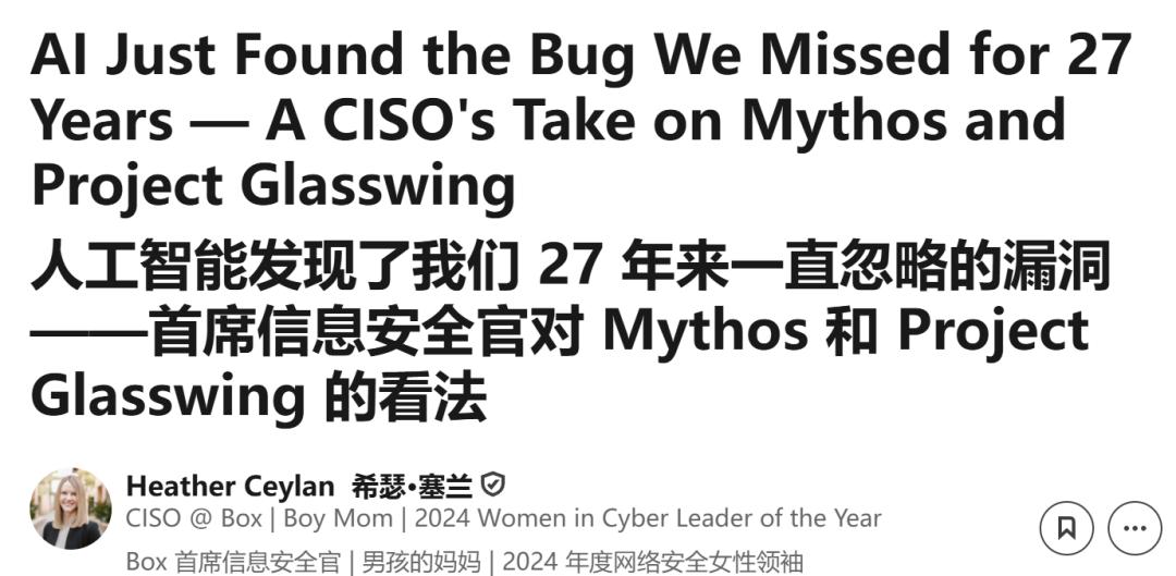 过去近三十年里,无数顶尖黑客和自动化扫描工具都没发现的死角,在Mythos面前就这样被揪出来了!