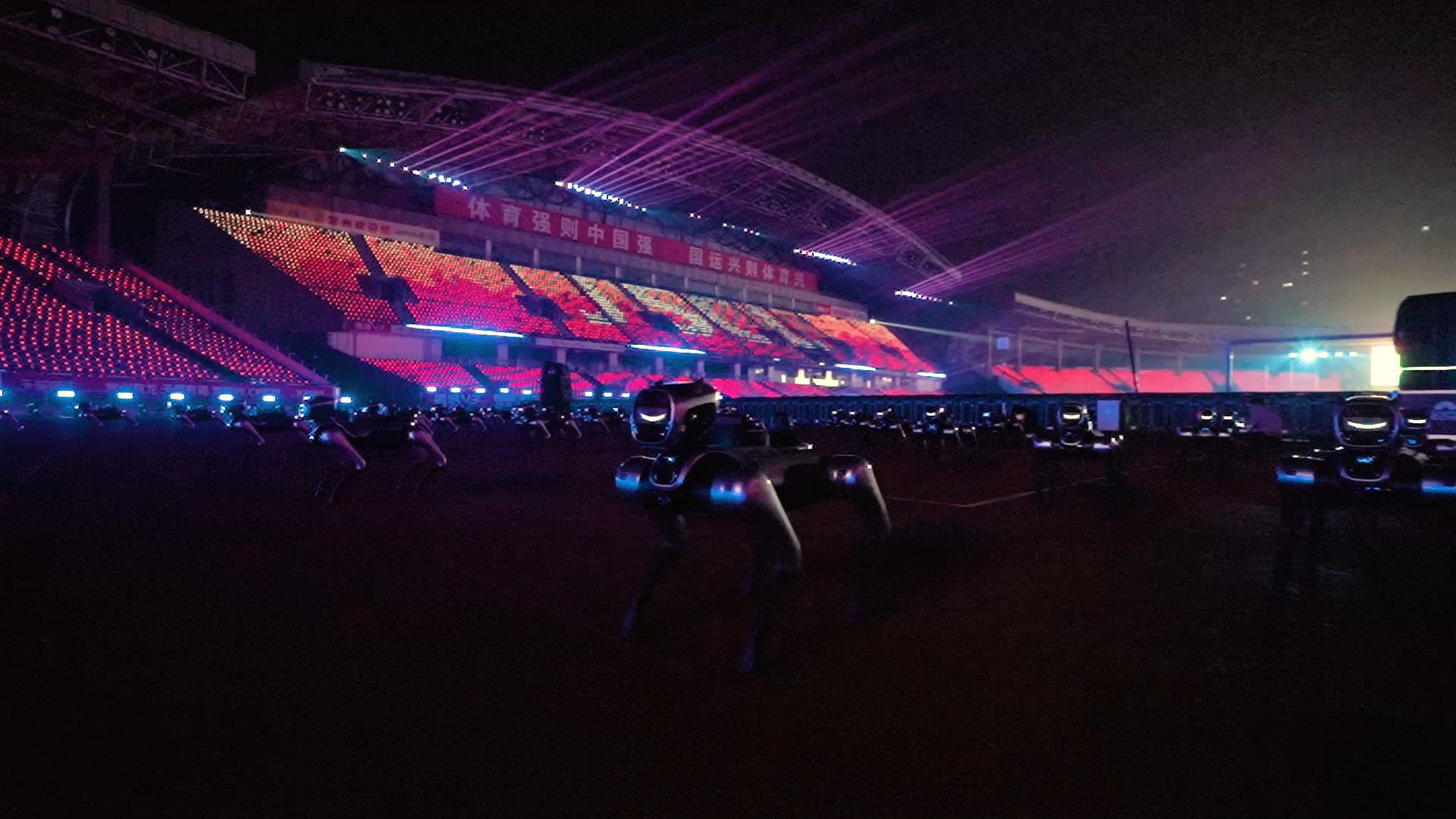 与央视春晚的室内环境不同,此次演出直面户外体育场的多重极端条件:持续降雨导致草坪湿滑、通信信号衰减、机器人本体与传感器面临防水与抗干扰的严峻考验;作为开幕式核心环节面向全国实时播出,要求表演必须百分之百成功,不容任何单点故障或动作延迟。