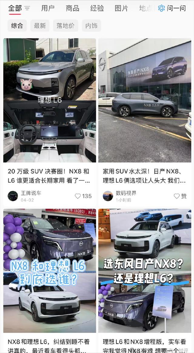 值得注意的是,4月9日,东风日产NX8刚刚上市,随后在一些主流社交平台上突然涌现了多条“东风日产NX8对标理想L6、理想i6”的内容,在文章评论区,也大都出现相似度很高的回复和评论。截至目前,大部分相关文章已被平台“下架”,只留下“当前内容无法展示”。