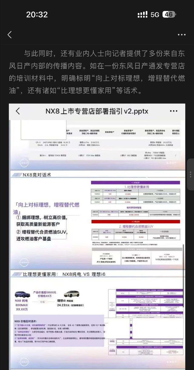 现在对黑公关是零容忍,确实会引起反感。有媒体报道,在东方日产通发专营店的培训材料中,明确标明“向上对标理想,增程替代燃油”以及“比理想更懂家用”等话术。