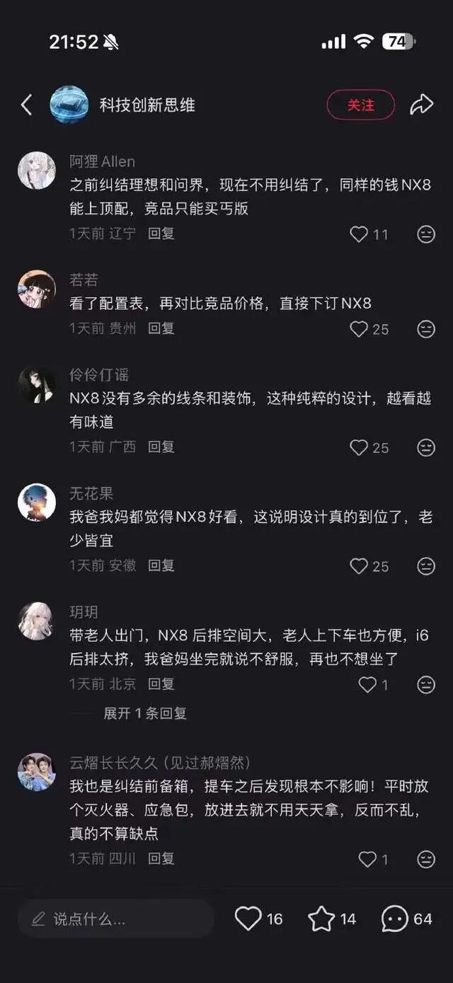 因为他们知道,站在金字塔尖必然要承受这些,NX8明摆着不可能成为i6的竞品,差了大几万的价格,就像MONA M03、零跑B01发布会对比model3,都是自娱自乐罢了。