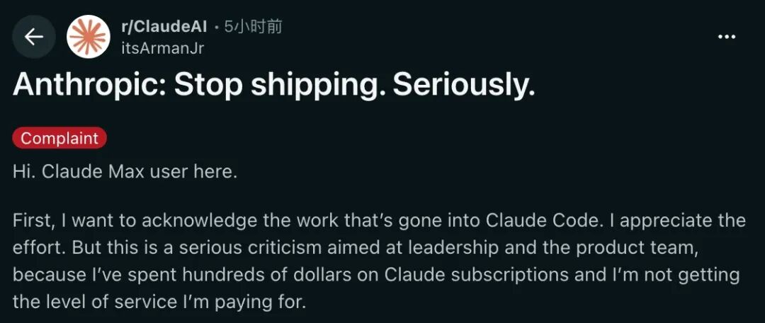 https://www.reddit.com/r/ClaudeAI/comments/1siqwmp/anthropic_stop_shipping_seriously/