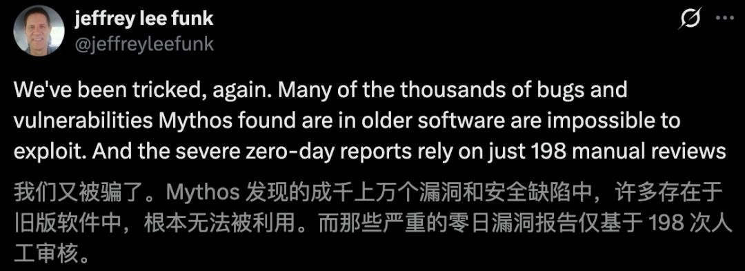 Mythos发现的成千上万个漏洞中,其中绝大多数,都存在于根本无法被利用的「老旧软件」中。