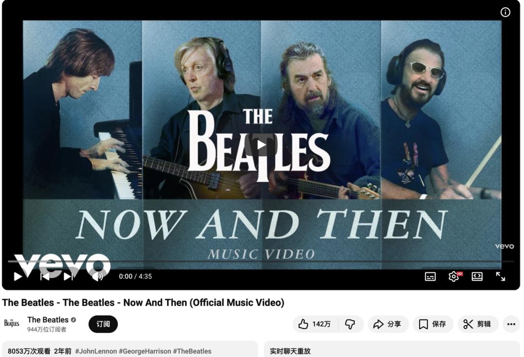 一首起笔于 1977 年,停滞于 1995 年的歌,在 2023 年利用 AI 技术,Now and Then 正式发行。四个人,横跨生死和半个世纪后,最后还是一起完成了。