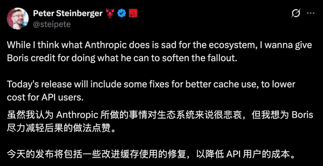 但在公告刚发布之际,Boris就火速空降,立刻化身品牌公关降温:在𝕏上一边安抚愤怒的龙虾用户,一边答疑解惑。