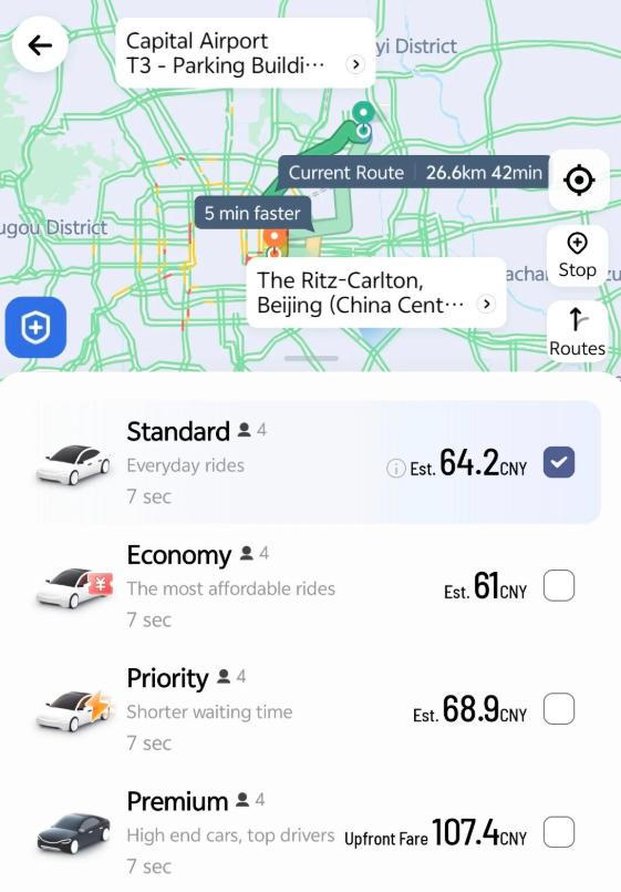 他试着输了几个点对点的距离,发现从首都机场到市区27公里,车费折合不到10美元,再次截图发给我,问这是新用户优惠券吧?