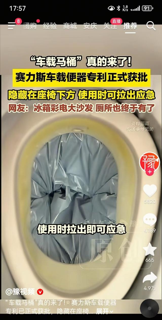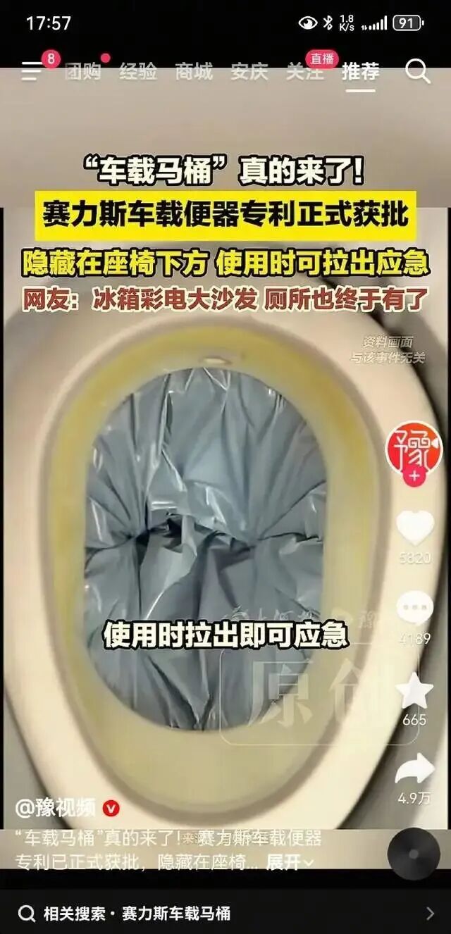 卖车变卖房,赛力斯车载马桶,评论区一片欢乐,专利设计容易使用难